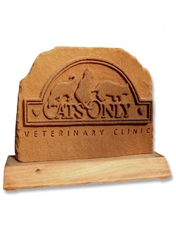 Your image is everything when dealing with your future and current clients. Sandstone Specialty Awards is here to maximize that impression with our one of kind corporate art sculptures, signs and more. Every item is handcarved from fired and hardened sandstone in natural or vibrant colors and a wide range of accessories, accents, sandblasted glass to complete each piece. Please browse the gallery below to see the possibilities. Sculptures can be made up to 16" high.