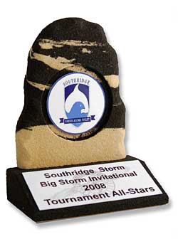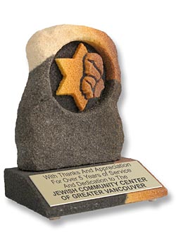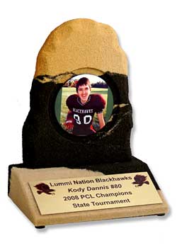 Sandstone Specialty Awards is here to take your next award presentation or promotional campaign or event to the next level. Every item we produce is a one of kind work of art with unique color and pattern combinations for each item. Our distinctive fired, hand carved and hardened 100% earth friendly sandstone awards, corporate gifts and promotional items are unmatched for customizing possibilities. Explore the possiblities with the photo gallery and accessory guide below and the Custom Guide.
