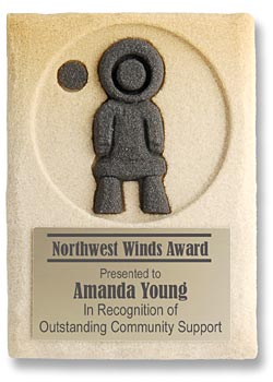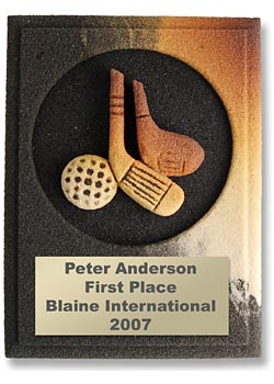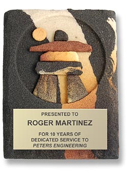 Sandstone Specialty Awards is here to take your next award presentation or promotional campaign or event to the next level. Every item we produce is a one of kind work of art with unique color and pattern combinations for each item. Our distinctive fired, hand carved and hardened 100% earth friendly sandstone awards, corporate gifts and promotional items are unmatched for customizing possibilities. Explore the possiblities with the photo gallery and accessory guide below and the Custom Guide.